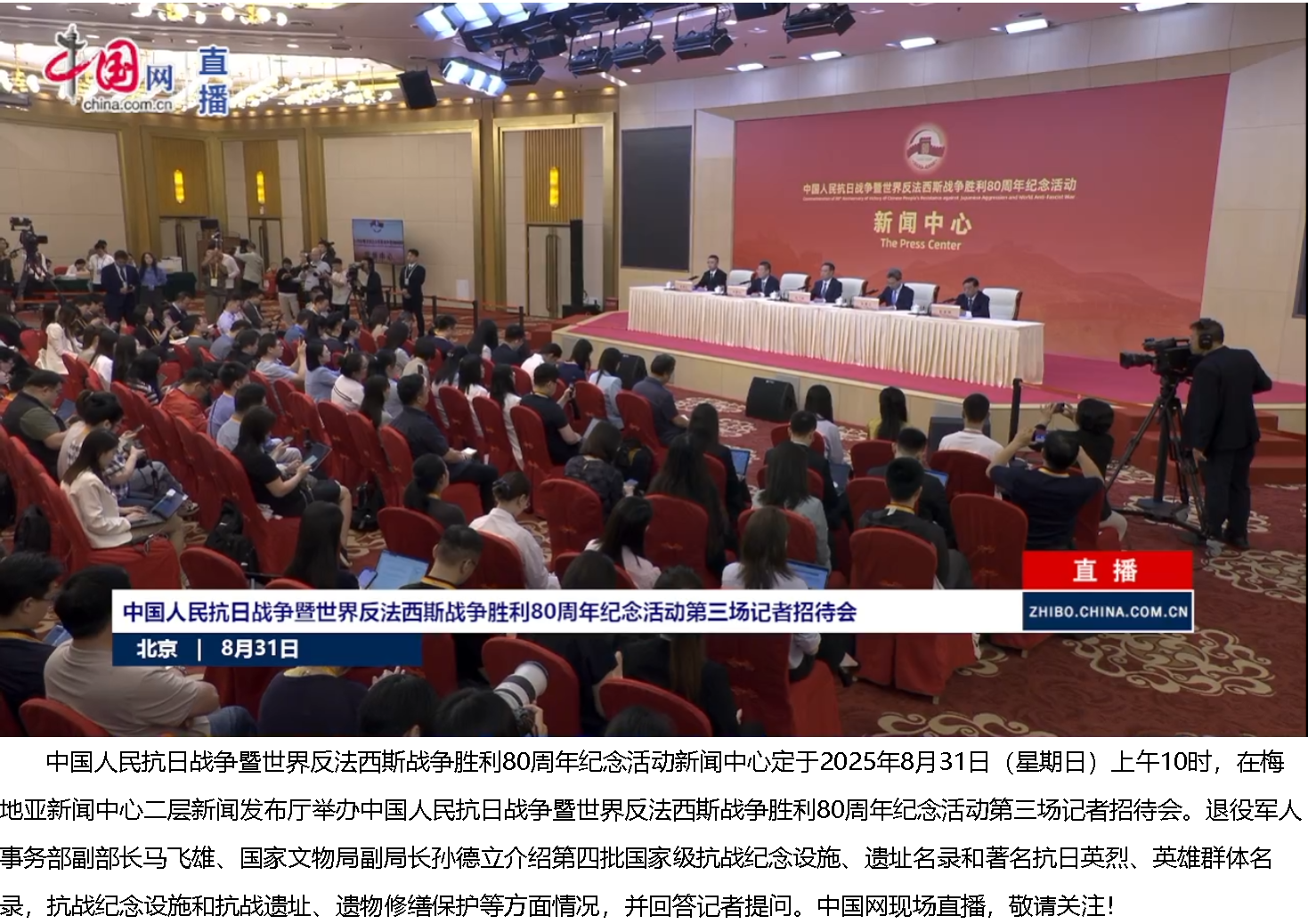 中國(guó)人民抗日戰(zhàn)爭(zhēng)暨世界反法西斯戰(zhàn)爭(zhēng)勝利80周年紀(jì)念活動(dòng)新聞中心負(fù)責(zé)人 周建設(shè):