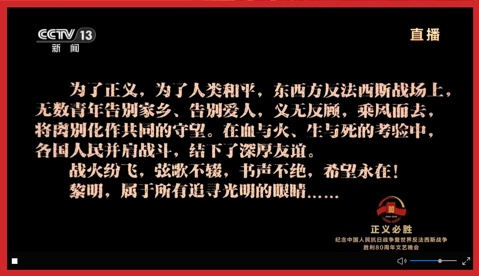 紀念中國人民抗日戰(zhàn)爭暨世界反法西斯戰(zhàn)爭勝利80周年文藝晚會到此結(jié)束!
