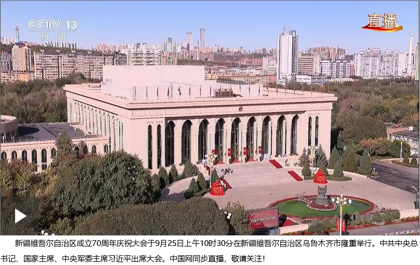 新疆維吾爾自治區(qū)成立70周年慶祝大會現(xiàn)在開始。