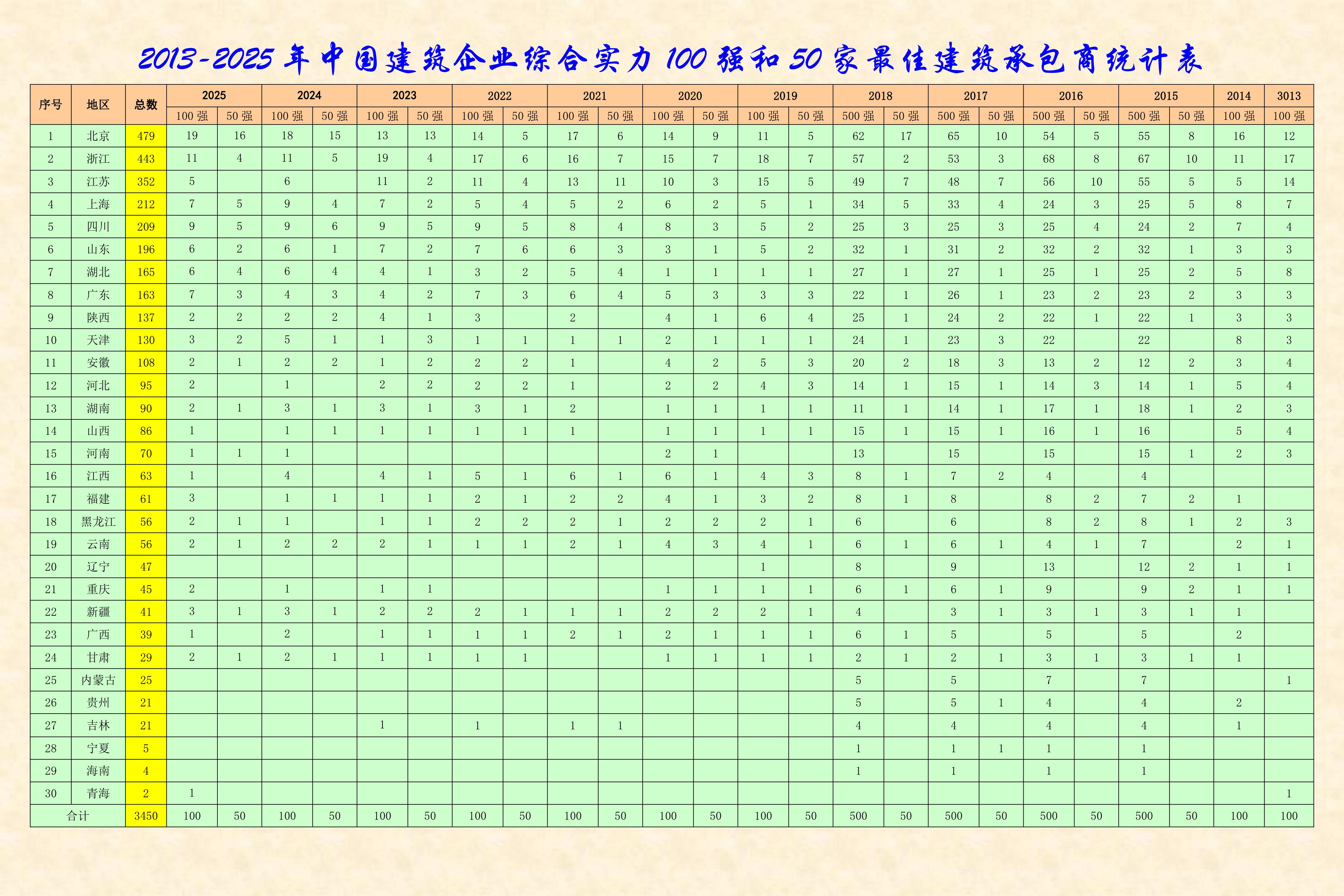 2025年中國建筑業綜合實力100強榜單重磅發布2025-08-29