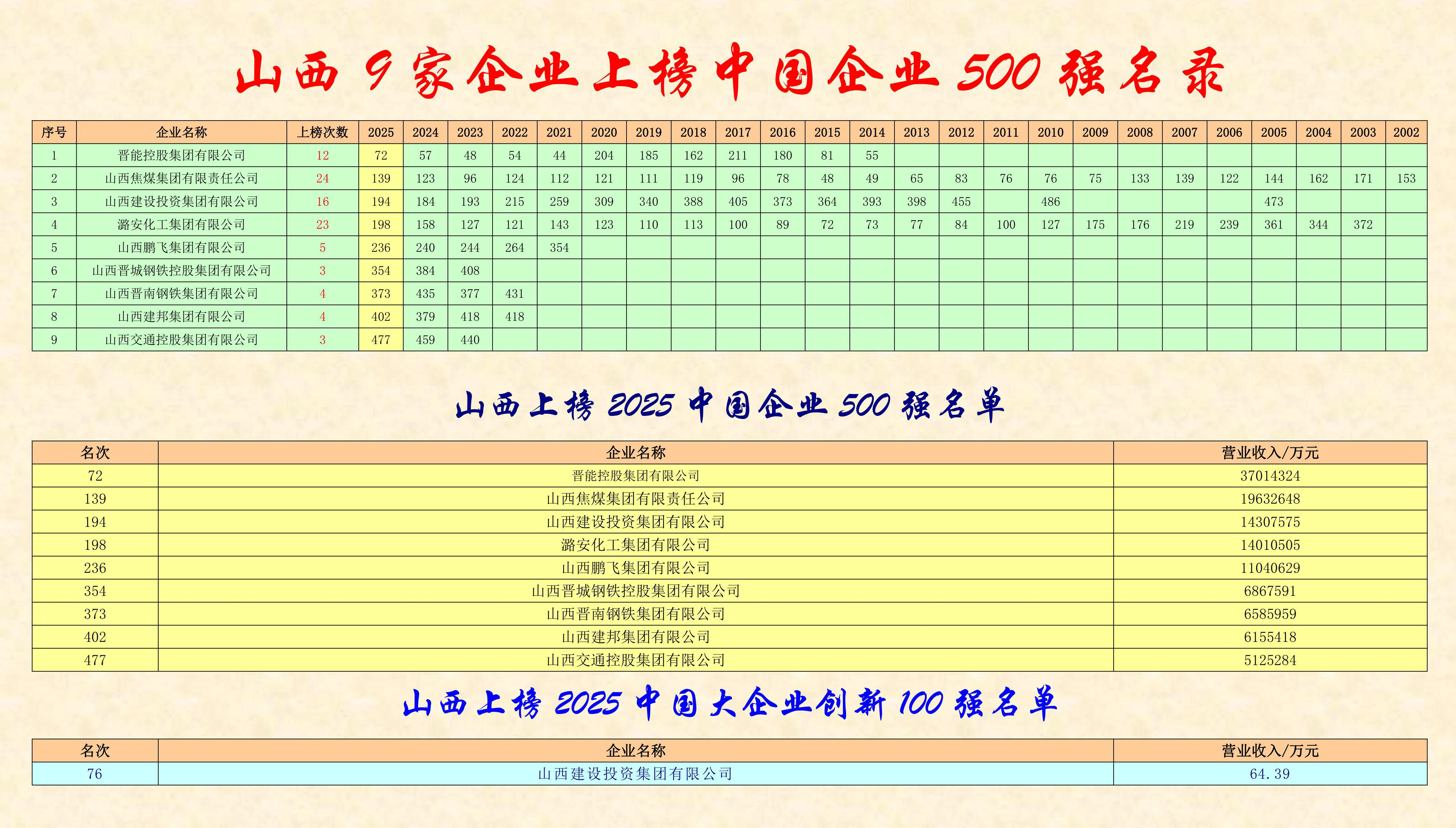 1 晉能控股集團有限公司 12 72 57 48 54 44 204 185 162 211 180 81 55