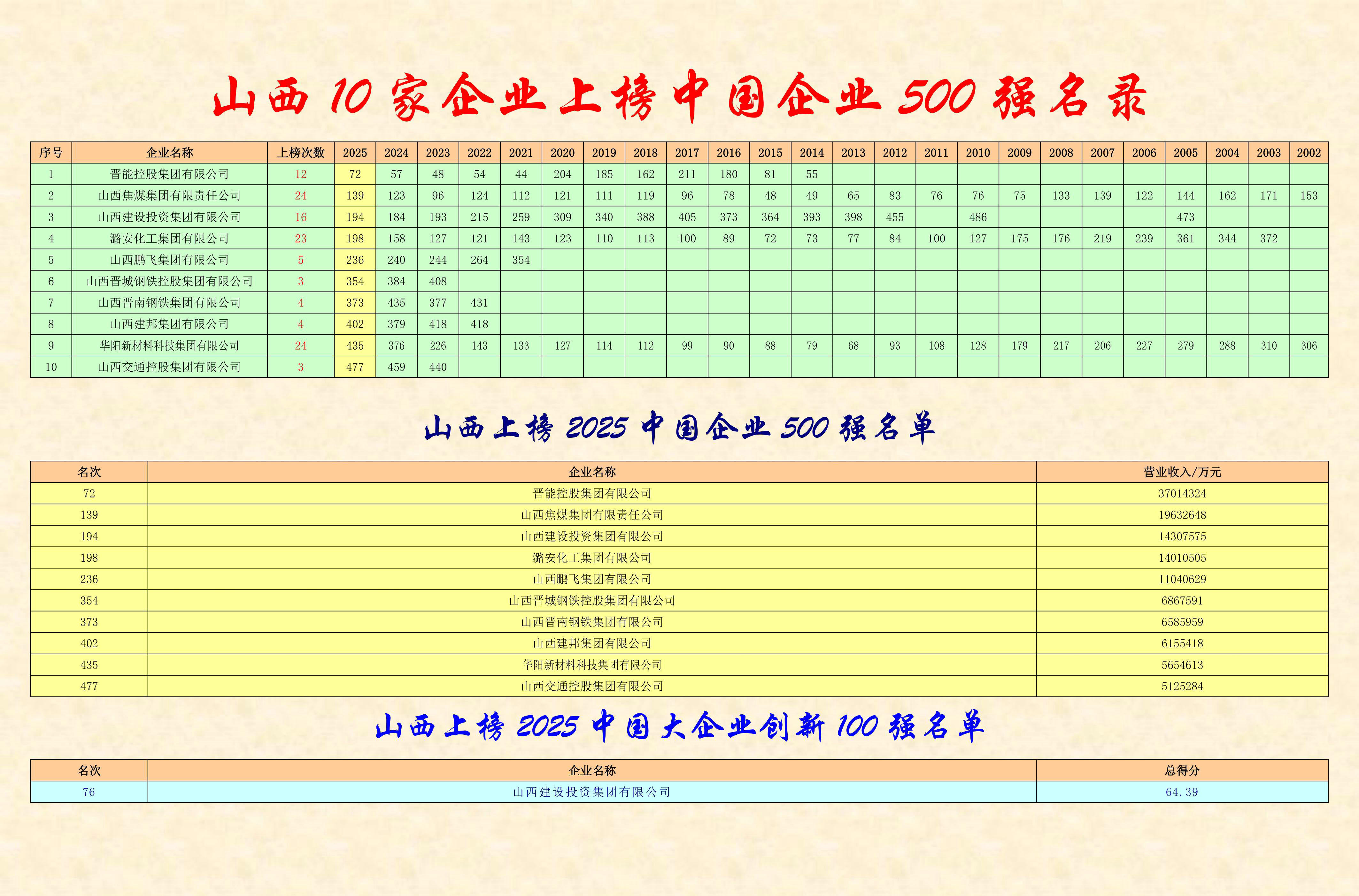 序號 企業名稱 上榜次數 2025 2024 2023 2022 2021 2020 2019 2018 2017 2016 2015 2014 2013 2012 2011 2010 2009 2008 2007 2006 2005 2004 2003 2002